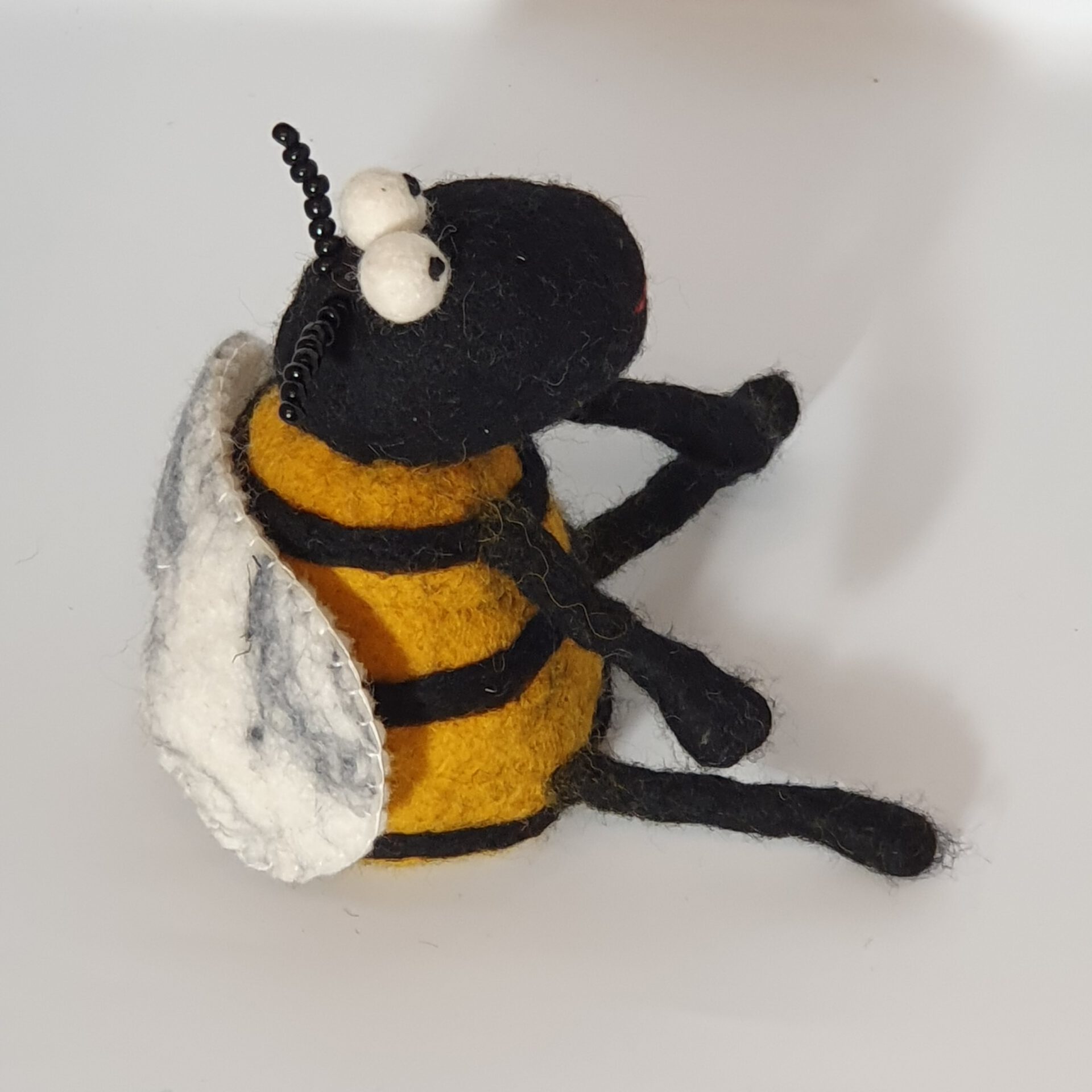 Die detailverliebten Filzflügel, die typischen Streifen und das freundliche Bienengesicht machen ihn zu einem echten Lieblingsstück – perfekt für alle, die Natur, Design und ein bisschen Humor lieben.